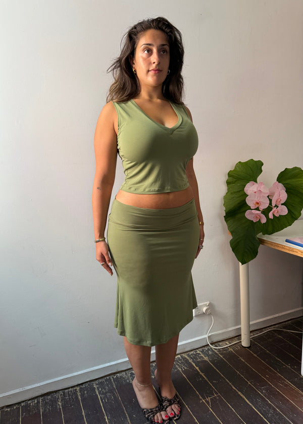Fold over midi skirt - Matcha