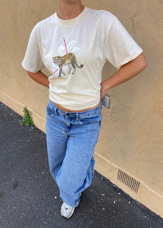 Leopard Hibiscus - butter T-shirt