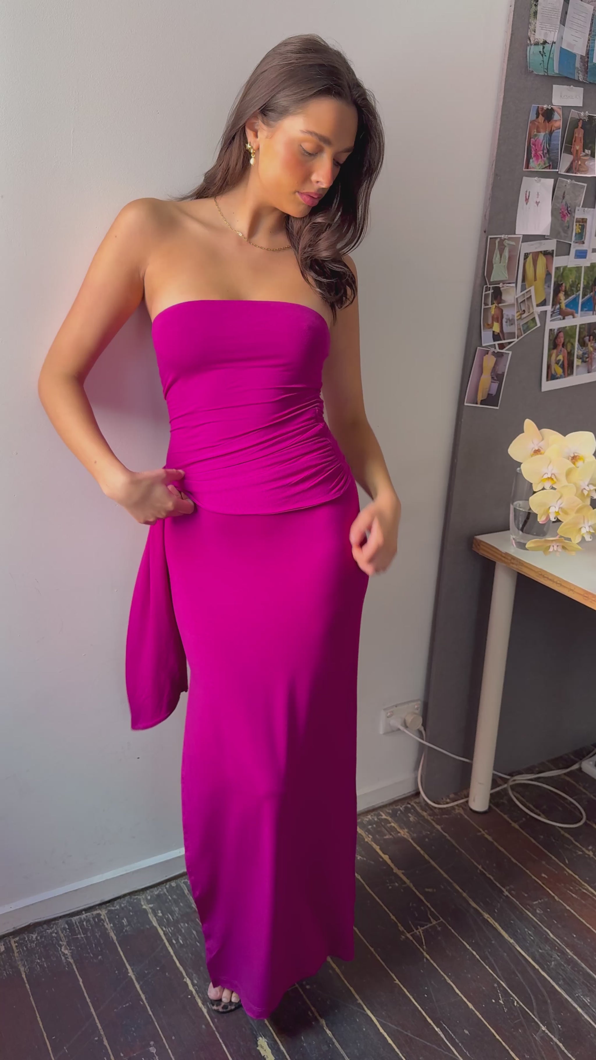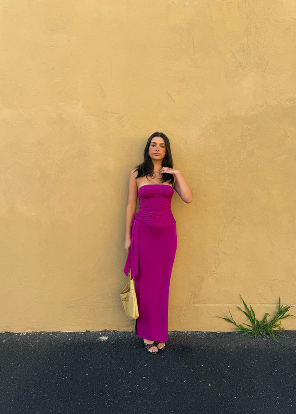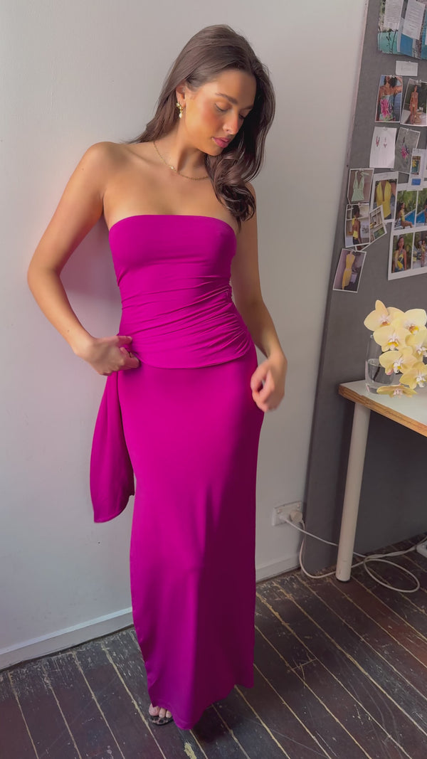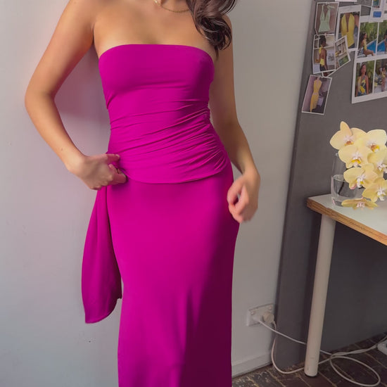 Draped strapless bamboo dress - Magenta
