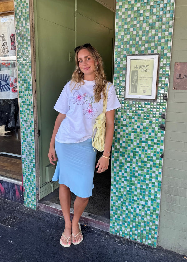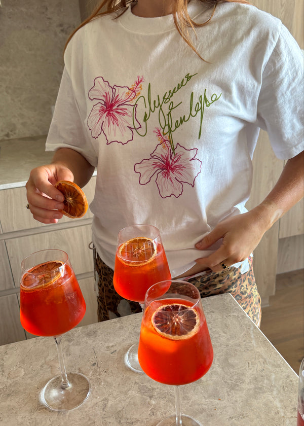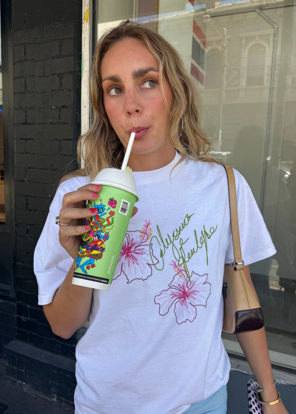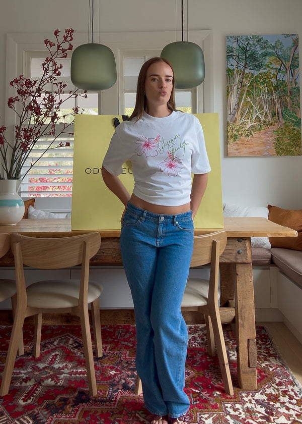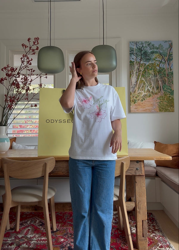 Featuring a Hibiscus illustration drawn by our founder, Cait Erskine, each tee is printed locally in Melbourne/Naarm, bringing a little O&P artistry to your wardrobe.