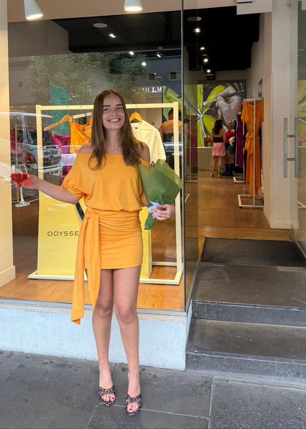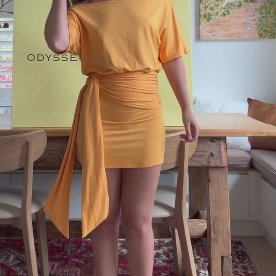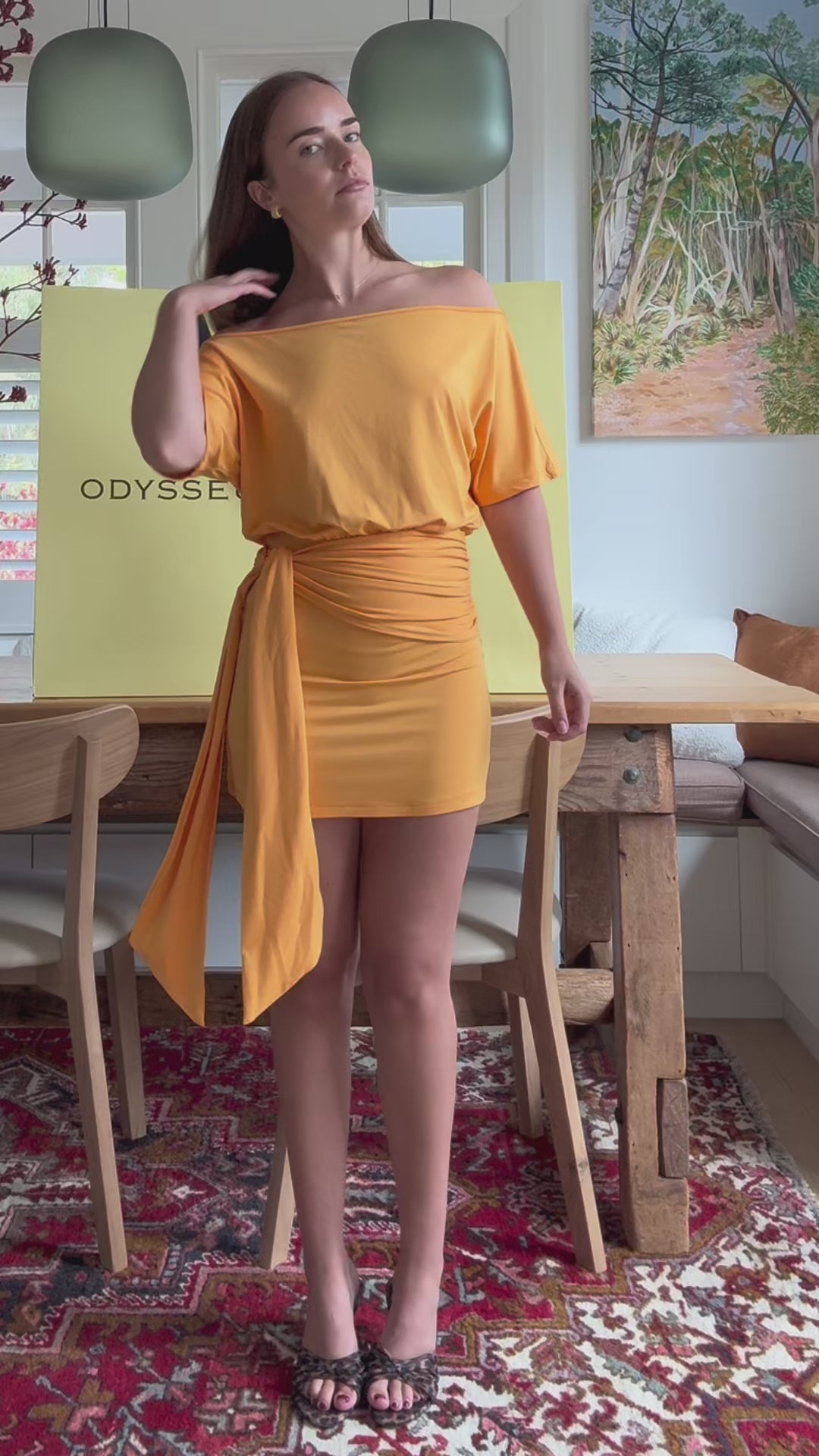 This slouchy mini dress hugs the body in all the right places, with a double layered tie up waist band that supports the waistline, for a comfortable & confident fit and feel.